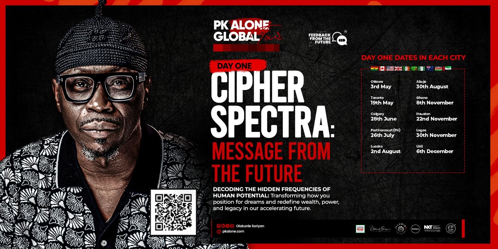 Held in cities around the world, the “PK-ALONE TOUR EXPERIENCE” is guided by the visionary architecture of The FEEDBACK FROM THE FUTURE Organization. Anyone anywhere in the world is at liberty to reach out to us host one in any city globally. “PK-ALONE TOUR EXPERIENCE” is hosted by inspired knowledge-seekers who understand that the future is not merely inherited—it is consciously discerned, received, hosted and given residency. United by a shared commitment to pushing boundaries and unlocking new realms of possibility, the hosts and attendees become both custodians and creators of a legacy that will reverberate far beyond the confines of the present.